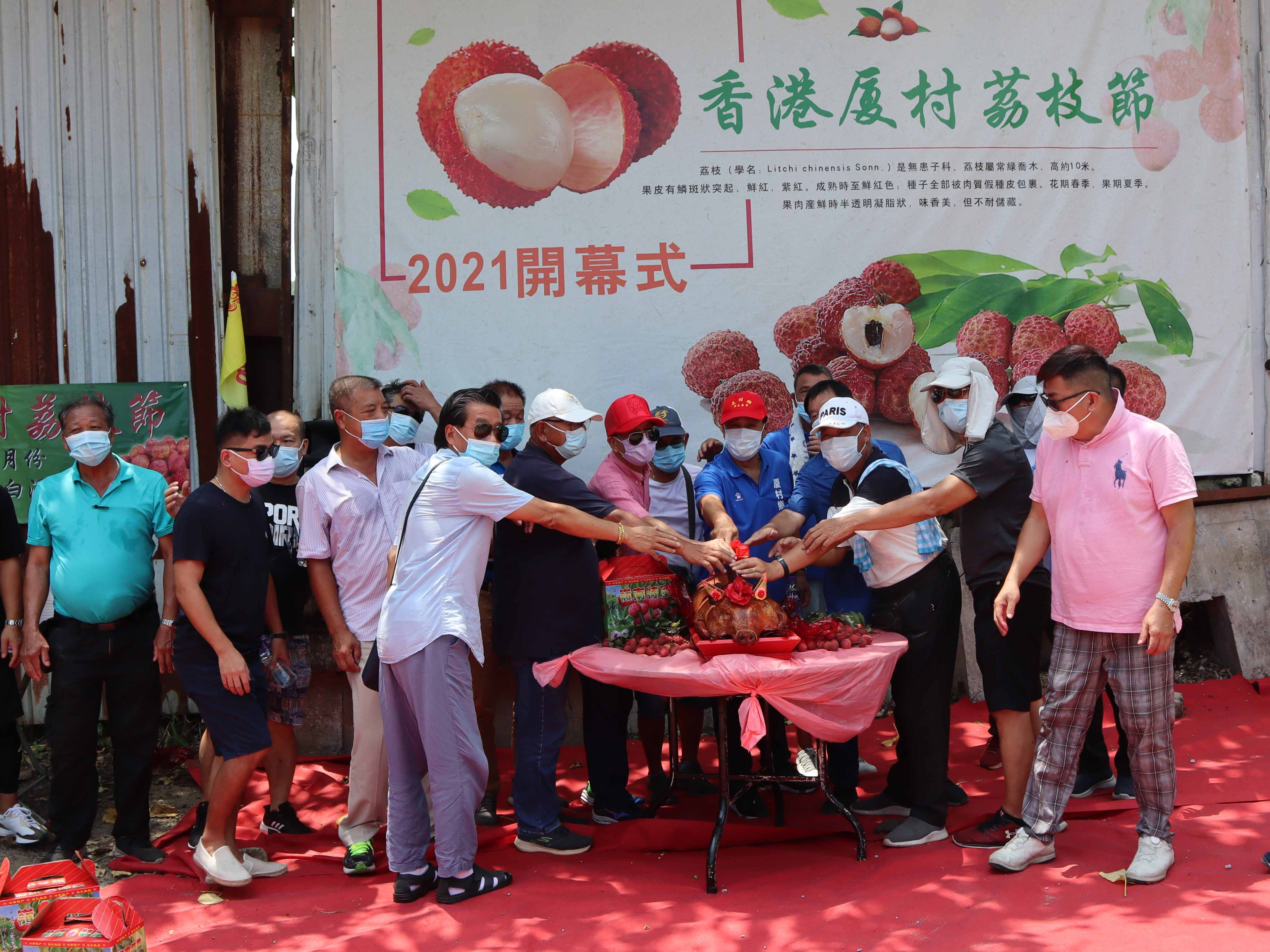 首屆廈村鄉(xiāng)荔枝節(jié)開幕儀式於6月19日舉行,當(dāng)日天文臺發(fā)出酷熱天氣警告,但炎熱天氣無阻村民熱情,在白泥一個(gè)荔枝園入口,舉行切燒豬等慶賀儀式,廈村鄉(xiāng)鄉(xiāng)事委員會主席鄧勵東、多名村代表、區(qū)議員等為主禮嘉賓。