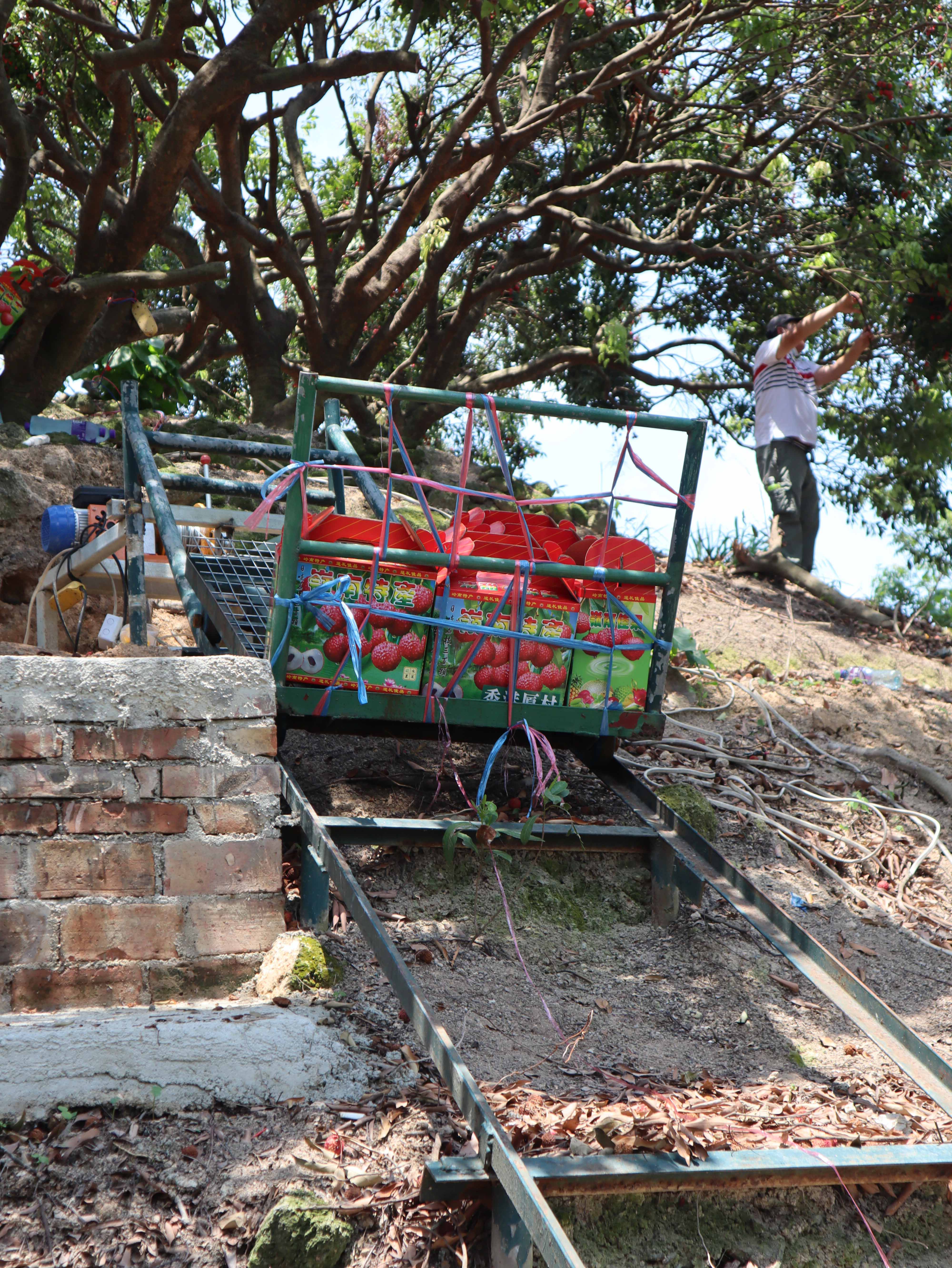 荔枝園山頭架設(shè)運(yùn)輸架方便將荔枝運(yùn)下山腳。