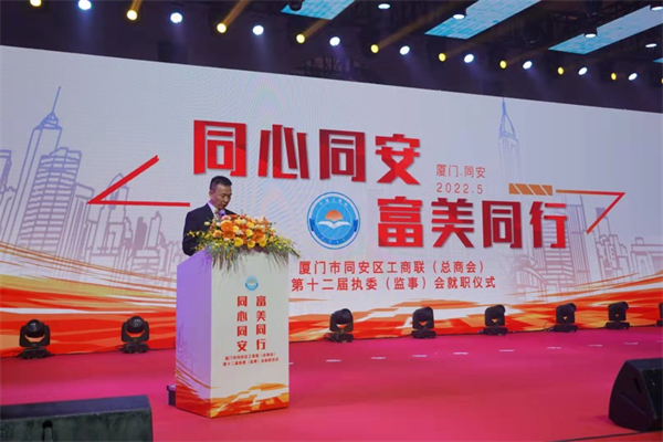 近日,同安區(qū)工商聯(lián)第十二屆執(zhí)委監(jiān)事就職典禮在廈門特房波特曼七星灣酒店舉行。新一屆執(zhí)委會、監(jiān)事會成員,同安區(qū)政府領(lǐng)導(dǎo)和有關(guān)職能部門負(fù)責(zé)人,區(qū)各民主黨派代表負(fù)責(zé)人等出席活動。