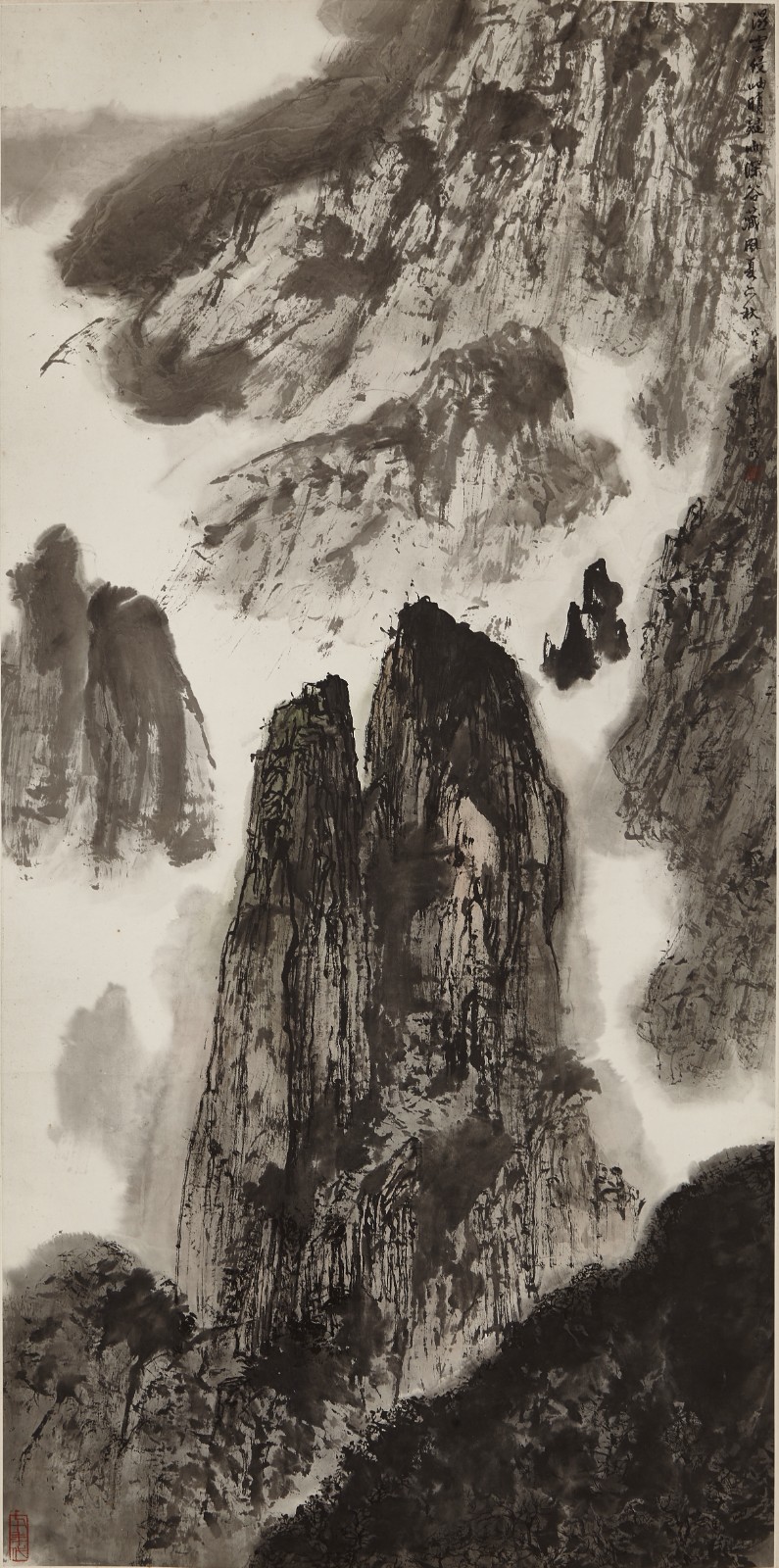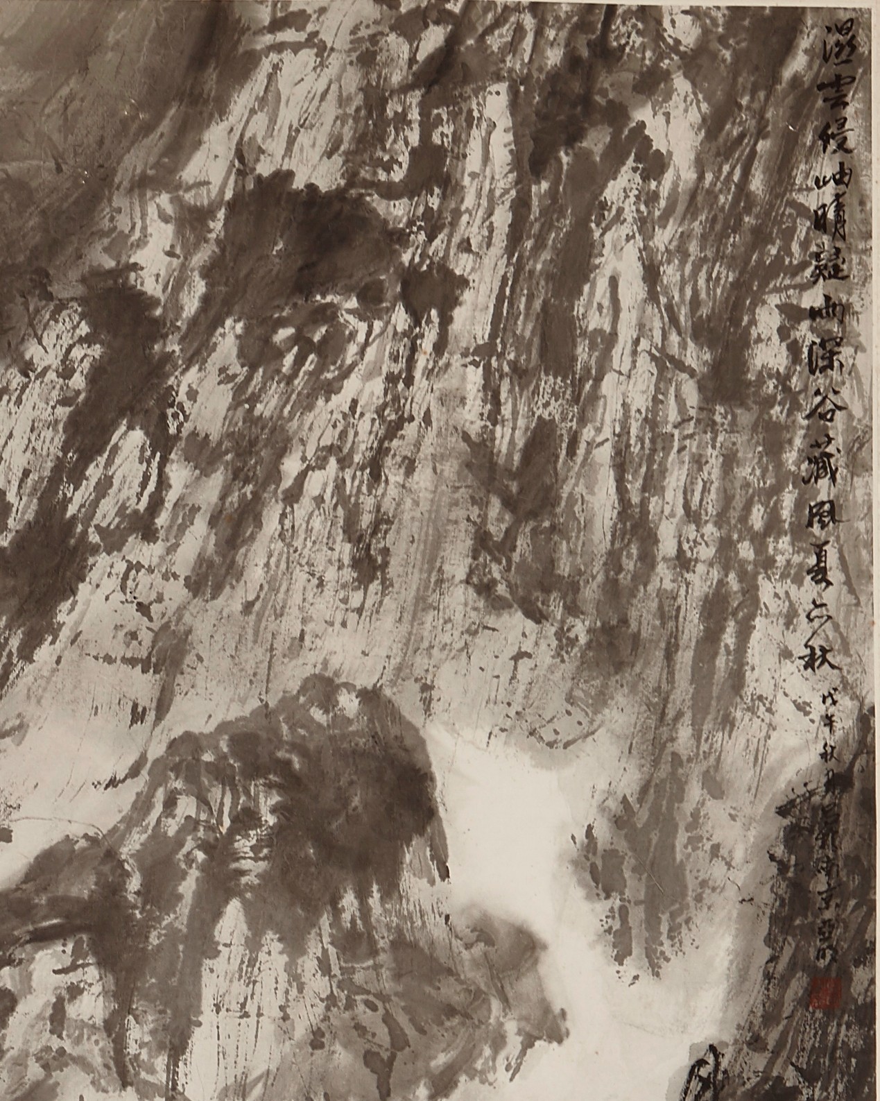 亞明作品《幽谷雲(yún)雨》,138x68cm。