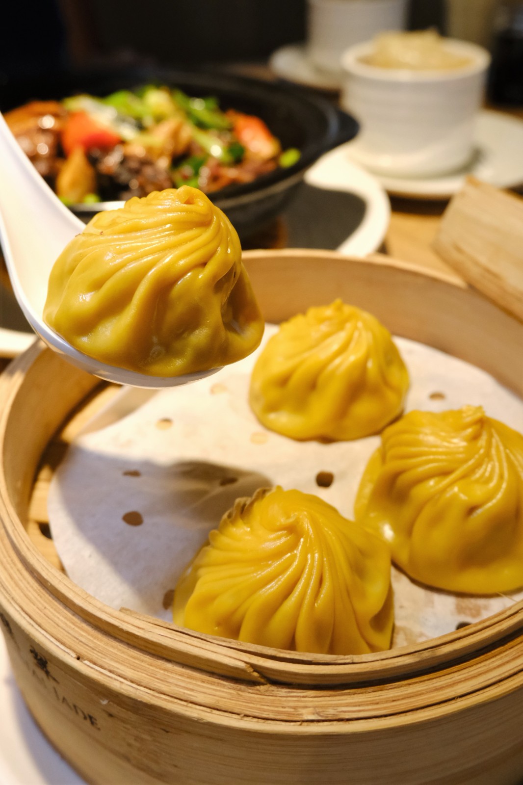 翡翠拉麵小籠包的期間限定特色賀年美饌,傳統(tǒng)名菜糅合新元素,包括「風(fēng)生水起——撈起撈喜」、「金銀滿屋——鮑魚金蠔蹄筋煲」、「甜甜蜜蜜——八寶飯」、「金玉滿堂——蝦頭油櫻花蝦帶子炒飯」等菜式。筆者推介「虎虎生威——黑虎掌小籠包」,小籠包是餐廳招牌名菜,現(xiàn)以珍菌黑虎掌入饌,肉餡裹著肉質(zhì)肥厚的黑虎掌,甘甜而具口感?!笝M財(cái)就手——紅燒蹄膀」聽菜名就福氣滿滿,蹄膀經(jīng)大廚長時(shí)間烹調(diào)呈現(xiàn)琥珀色澤,外形是討喜的元寶形狀,外皮入口即化,鮮嫩多汁?!肝r蝦大笑——黃金蝦球鍋巴」油炸原粒蝦球後再放到鹹蛋黃快炒,每粒蝦球都被鹹蛋蓉均勻包裹,十分惹味?!秆笱蟮靡狻t燜枝竹羊腩煲」是冬日必吃的滋補(bǔ)菜,羊肉口感軟腍,羶味不會過重。賀年菜不能缺少湯品,「百花鳳凰——花膠雲(yún)吞雞湯」寓意破陰釋陽,意味迎接新景象,鮮雞經(jīng)燜煮肉質(zhì)嫩滑,雲(yún)吞皮薄、餡料十足,再加入膠原蛋白豐富的厚肉花膠,令湯底更鮮甜。餐廳亦準(zhǔn)備了不同的賀年套餐,方便食客與親朋好友聚首一堂,享用滬式賀年菜。