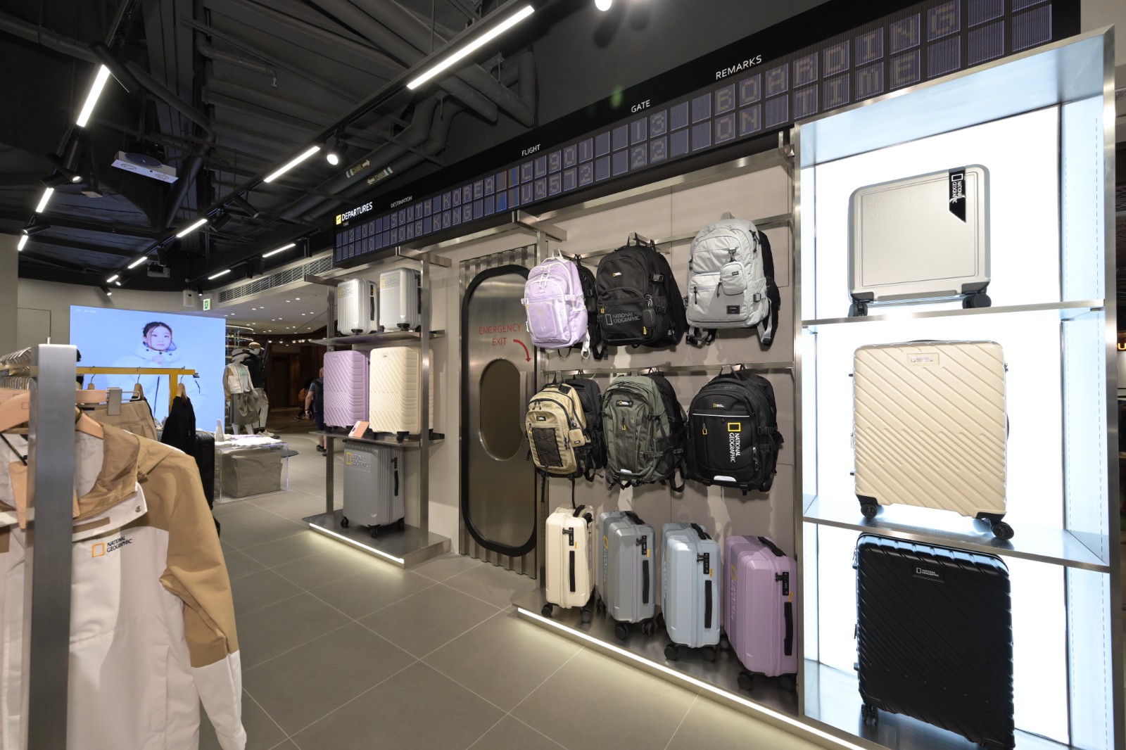 旗艦店設(shè)計上充滿「旅行」細節(jié),設(shè)置了模仿機場代表性位置的打卡位,銀灰色調(diào)恍如置身客運大樓。店舖設(shè)置不同電子藝術(shù)裝置展示大自然景觀,壯麗的自然風(fēng)景影像與最新服飾在光影交織下,呈現(xiàn)出大自然與時尚交匯之美。