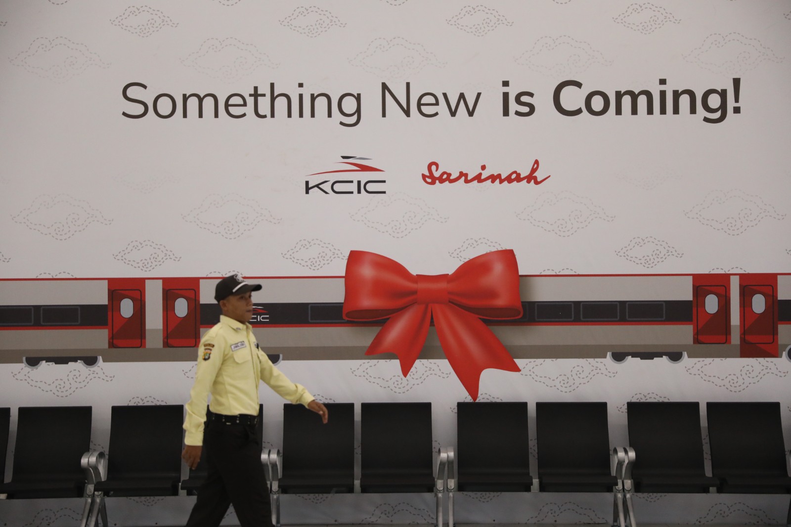 當(dāng)?shù)貢r(shí)間9月6日,工作人員在雅萬(wàn)高鐵哈利姆車站合影,該站是雅加達(dá)第一站,有「椰城東大門」之稱。