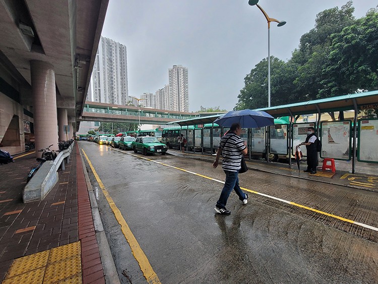 黑色暴雨下,港鐵維持有限度服務(wù),新界北區(qū)在今日(8日)早上9時(shí)許,雨勢仍持續(xù),部分仍需上班市民到港鐵上水站候車,昨晚(7日)封閉的 E 出口已重開。此外,九巴來往上水至天水圍的276P線,在10時(shí)20分重開,其餘在北區(qū)區(qū)內(nèi)路線部分已開始投入服務(wù)。在上水總站交通交匯處,市民在的士站等候,但大部分司機(jī)將的士泊在車站離去。(記者 區(qū)天海攝)