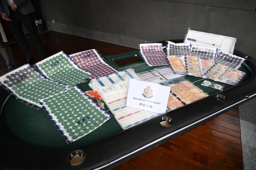 新界南總區(qū)刑事部總督察劉煜華今日(11日)表示,為打擊非法賭博場所及相關收入,新界南總區(qū)反三合會行動組在本年初派探員喬裝假扮賭客,收集非法賭博場所相關的情報,包括透過不同渠道找尋和確定賭博場所的地點,和多次喬裝賭客到目標場所收集情報,掌握營運模式和時間,以及負責人的身份,其後成功所定2個在工業(yè)大廈的德州撲克非法賭檔。