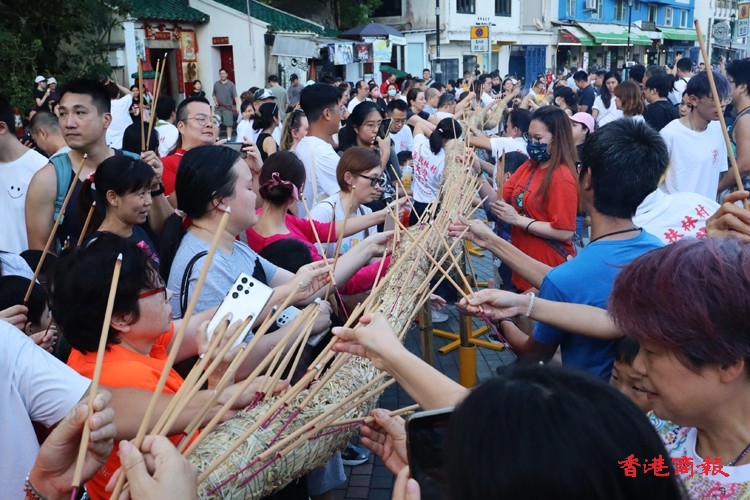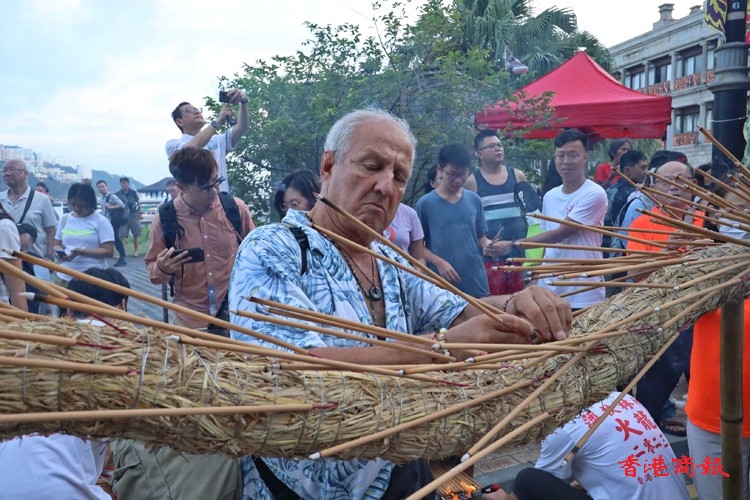 赤柱舞火龍巡遊的特色,是除了火龍會(huì)義工,市民、遊客都可嘗試為火龍插上香枝,吸引不少市民上香打卡,亦有義工向遊客解釋舞火龍的由來,讓遊客進(jìn)一步了解香港獨(dú)特的傳統(tǒng)文化。另一特色是舞火龍都是健碩的男士為主,赤柱舞火龍就有幾位女士參加,只見她們出盡全力舞動(dòng)火龍,相比男健兒不遑多讓。