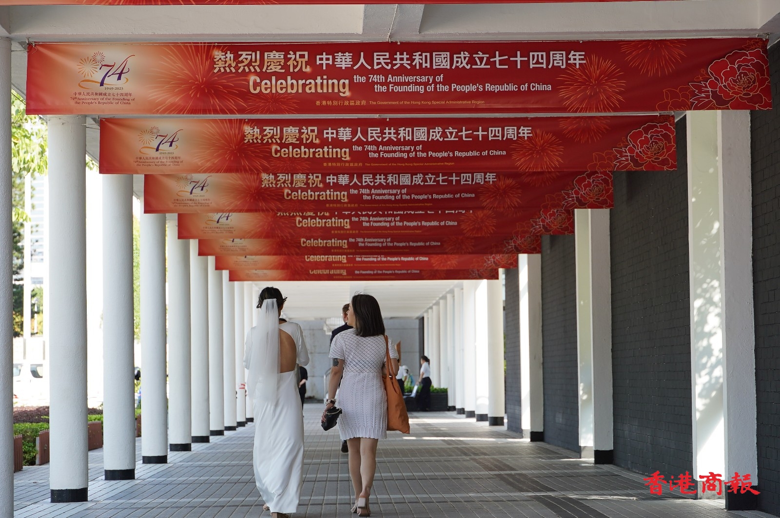 為慶祝中華人民共和國成立七十四周年,香港大街小巷張燈結綵,節(jié)日氛圍逐漸升溫。四處都掛滿中國國旗及國慶標語,市民在濃濃的祝賀氣氛下,均十分期待一系列的慶祝活動,與熱烈慶祝新中國成立的慶典。(記者 攝影 俊文)