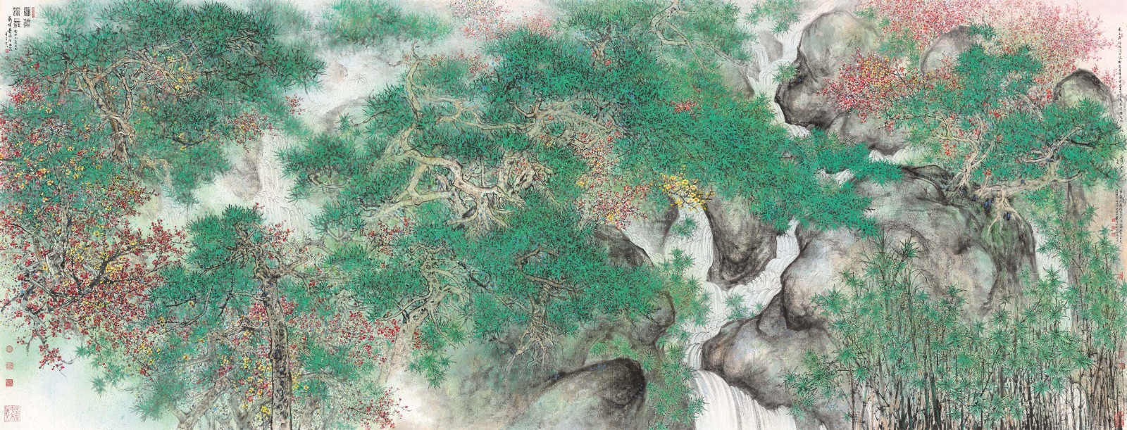 蕭暉榮作品《源遠(yuǎn)流長(zhǎng)》,設(shè)色紙本,2023年,192x500cm。