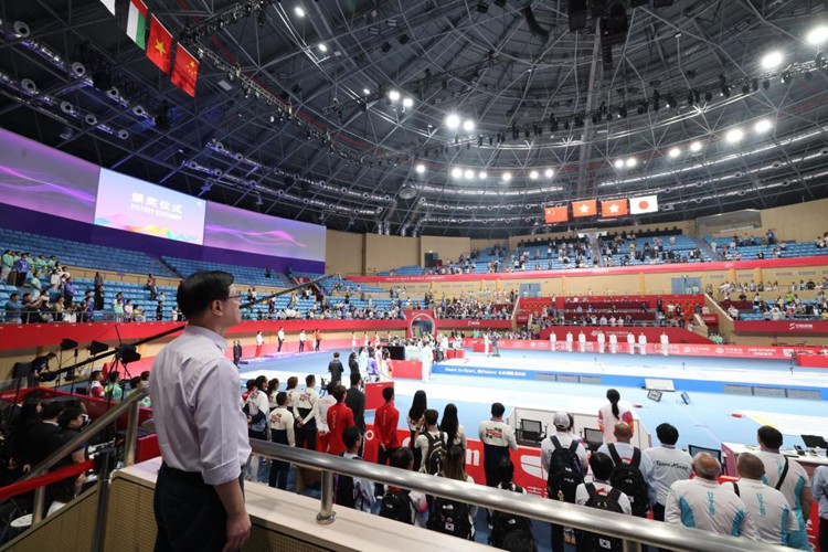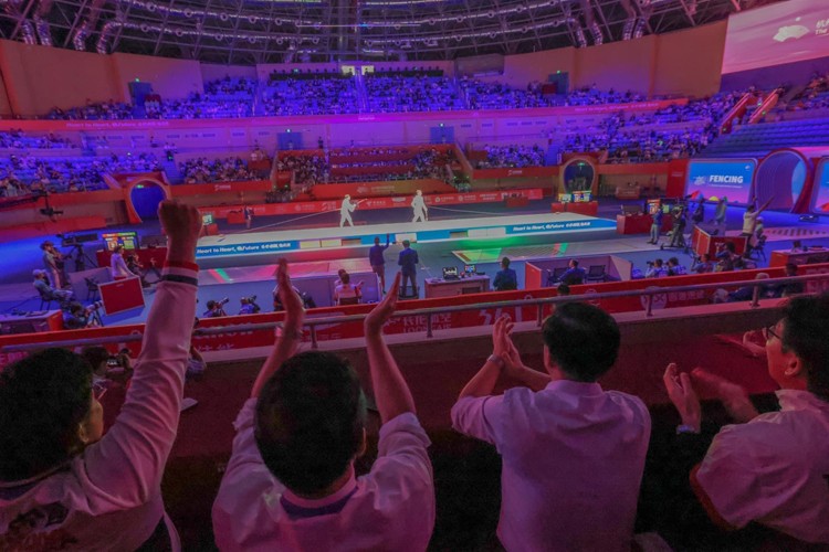 超哥去了觀看游泳、武術(shù)和劍擊賽事,身為氣功師傅的他,見到武術(shù)的運(yùn)動(dòng)員也以雙手抱拳打招呼。(木子)