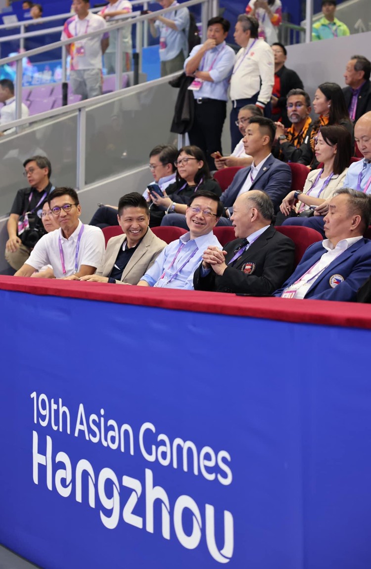 杭州亞運(yùn)會(huì)的第1天賽事,香港隊(duì)收獲滿滿,現(xiàn)在杭州的特首李家超也沒有閑著,他說自己今天只做一件事就是為運(yùn)動(dòng)員打氣?!肝液蛨F(tuán)隊(duì)今天只做一件事,就是分別到現(xiàn)場(chǎng)以歡呼喝采和掌聲全力為運(yùn)動(dòng)員打氣,表達(dá)我們的支持。大家也一起留言為運(yùn)動(dòng)員加油吧!」