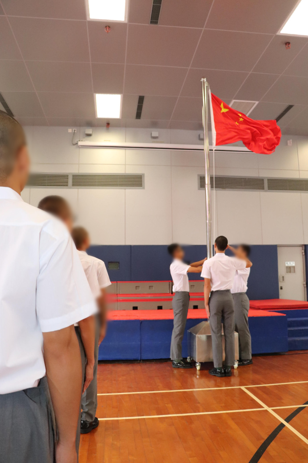 懲教署於壁屋懲教所、沙咀懲教所及勵敬懲教所成立青少年在囚人士升旗隊(升旗隊),並於今日(1日)國慶日首次安排升旗隊隊員擔任升旗手,在三間院所舉行升國旗儀式,進一步加強青少年在囚人士的國民教育,提升他們的國家觀念、民族情感和增加他們的國民身份認同。