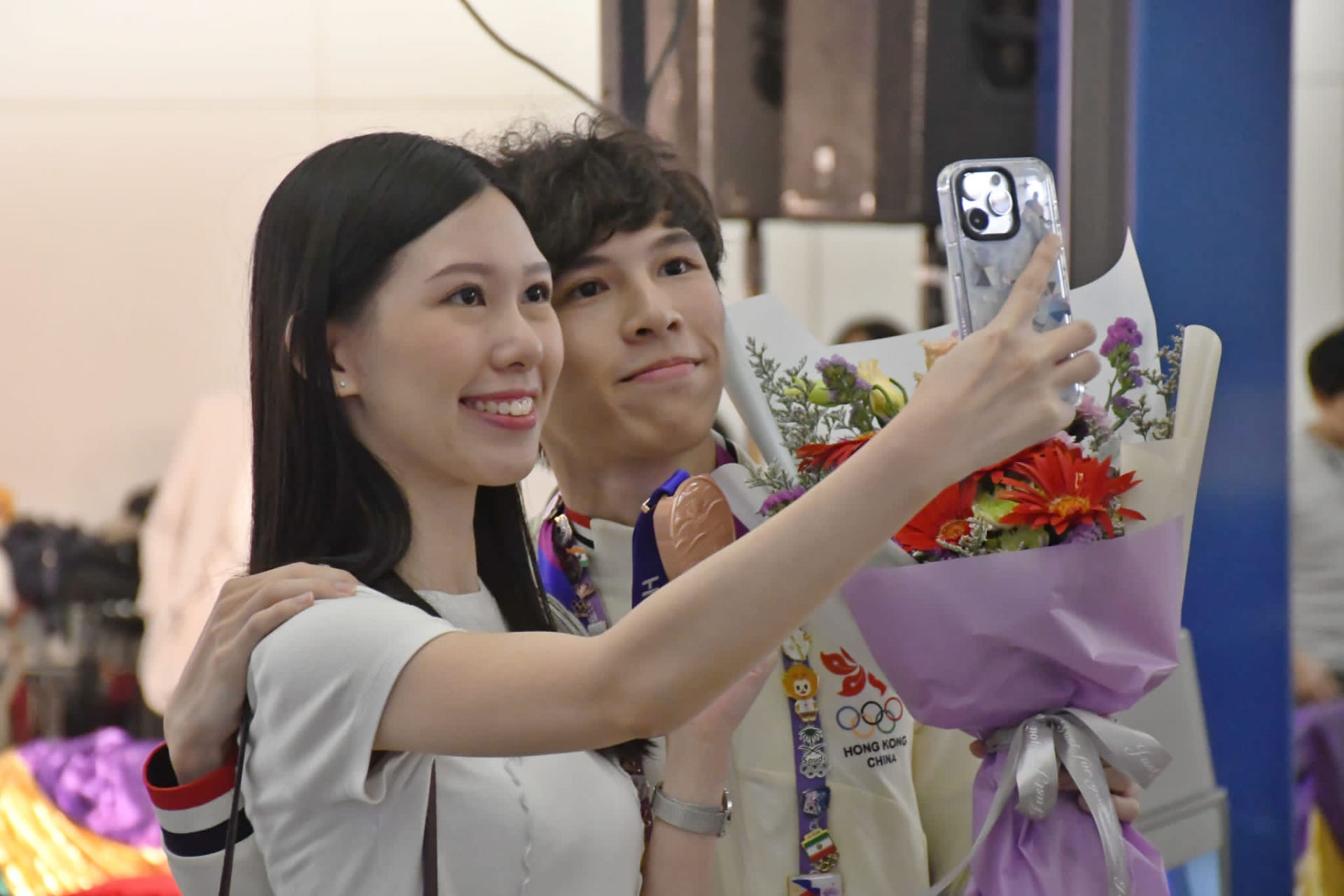 政務(wù)司副司長(zhǎng)卓永興、文化體育及旅遊局局長(zhǎng)楊潤(rùn)雄、康樂(lè)及文化事務(wù)署署長(zhǎng)劉明光、中國(guó)香港體育協(xié)會(huì)暨奧林匹克委員會(huì)(港協(xié)暨奧委會(huì))會(huì)長(zhǎng)霍震霆、港協(xié)暨奧運(yùn)會(huì)副會(huì)長(zhǎng)及中國(guó)香港代表團(tuán)團(tuán)長(zhǎng)霍啟剛,以及體育專員黃德森等到場(chǎng)迎接。