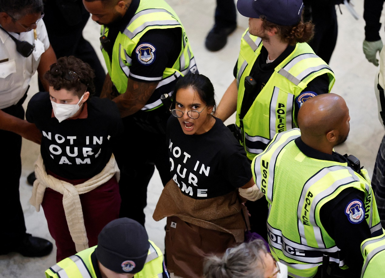 抗議者湧入美國會大廈籲巴以停火 300餘人被捕