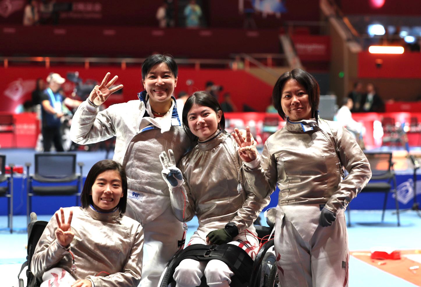 輪椅劍擊賽事同於今日?qǐng)A滿落幕,港隊(duì)在最後一日賽事,於女子佩劍團(tuán)體賽奪得一面銅牌。由余翠怡、林嘉雯、范珮珊及湯雅婷組成的港隊(duì)4強(qiáng)以23比45不敵國(guó)家隊(duì),隨後與韓國(guó)隊(duì)爭(zhēng)奪銅牌,最終以45比29取勝??偨Y(jié)今屆賽事,港輪椅劍擊隊(duì)以2銀3銅共5面獎(jiǎng)牌完成。(文:志誠(chéng) 圖片由中國(guó)香港殘疾人奧委會(huì)提供)