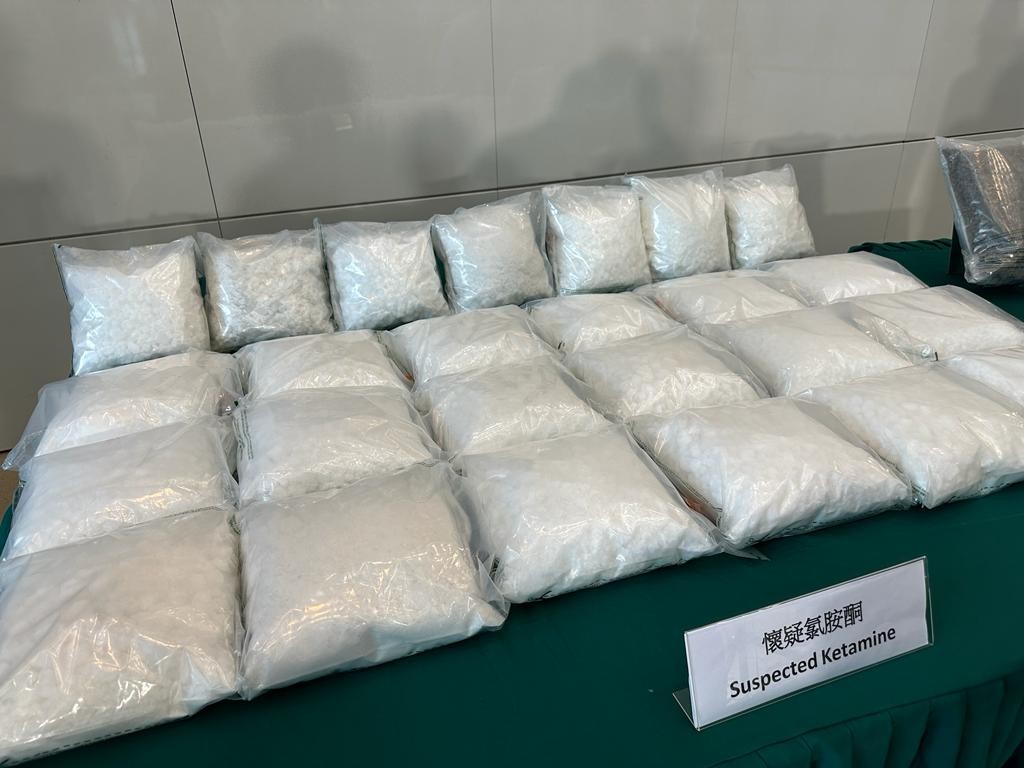 海關毒品調查科毒品調查第三組高級調查主任梁開業(yè)今日(11月1日)表示,根據(jù)情報及深入調查,關員昨日下午在葵涌進行反毒品行動,截查一名目標男子,將他押解到附近一個劏房單位搜查,搜出25包、共重約100公斤的懷疑氯胺酮和1.1公斤懷疑大麻花,以及毒品包裝工具。遂將涉案男子拘捕,涉嫌販運危險藥物罪。經(jīng)調查後,人員將疑犯押解到其住所,再搜出250克懷疑大麻花。
