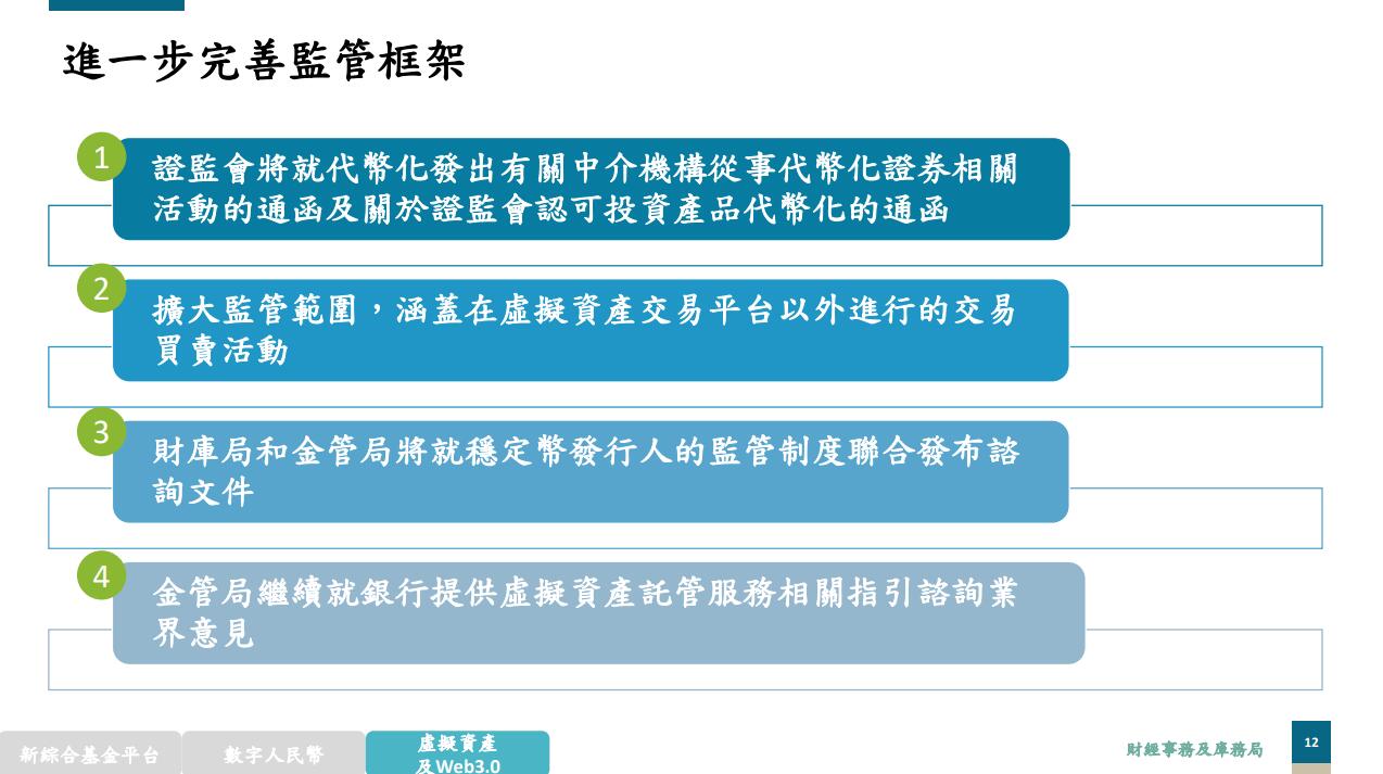至於穩(wěn)定幣發(fā)行人的監(jiān)管制度,財(cái)庫(kù)局和香港金融管理局(金管局)將適時(shí)就實(shí)施該制度的立法建議聯(lián)合發(fā)布諮詢(xún)文件。