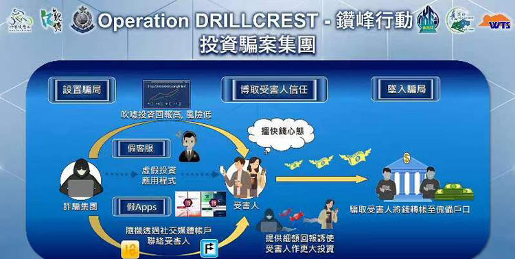 騙徒透過(guò)吹噓投資項(xiàng)目回報(bào),指風(fēng)險(xiǎn)低和在短時(shí)間穩(wěn)賺高達(dá)10至20厘回報(bào),覷準(zhǔn)受害人搵快錢(qián)心態(tài),吸引投資虛擬貨幣、內(nèi)地股票、貴金屬、外匯投資,其後誘使受害人安裝虛假投資應(yīng)用程式,假扮客服人員回答查詢。在投資初期聲稱(chēng)投資獲利,讓受害人賺取少量回報(bào),隨即遊說(shuō)作更大投資,當(dāng)受害人投放更多資金後即失去聯(lián)絡(luò),如受害人要求套現(xiàn)時(shí)會(huì)以繳交高昂手續(xù)費(fèi),或系統(tǒng)故障拖延。
