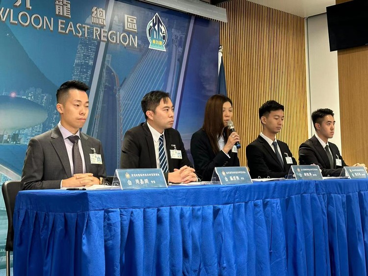 頂圖圖說(shuō):左起為秀茂坪警區(qū)科技及財(cái)富罪案組周嘉潤(rùn)督察、將軍澳科技及財(cái)富罪案組羅君傑督察、東九龍總區(qū)科技及財(cái)富罪案組總督察鄔凱寧、黃大仙警區(qū)科技及財(cái)富罪案組劉卓烽督察、觀塘警區(qū)科技及財(cái)富罪案組梁普恩督察。