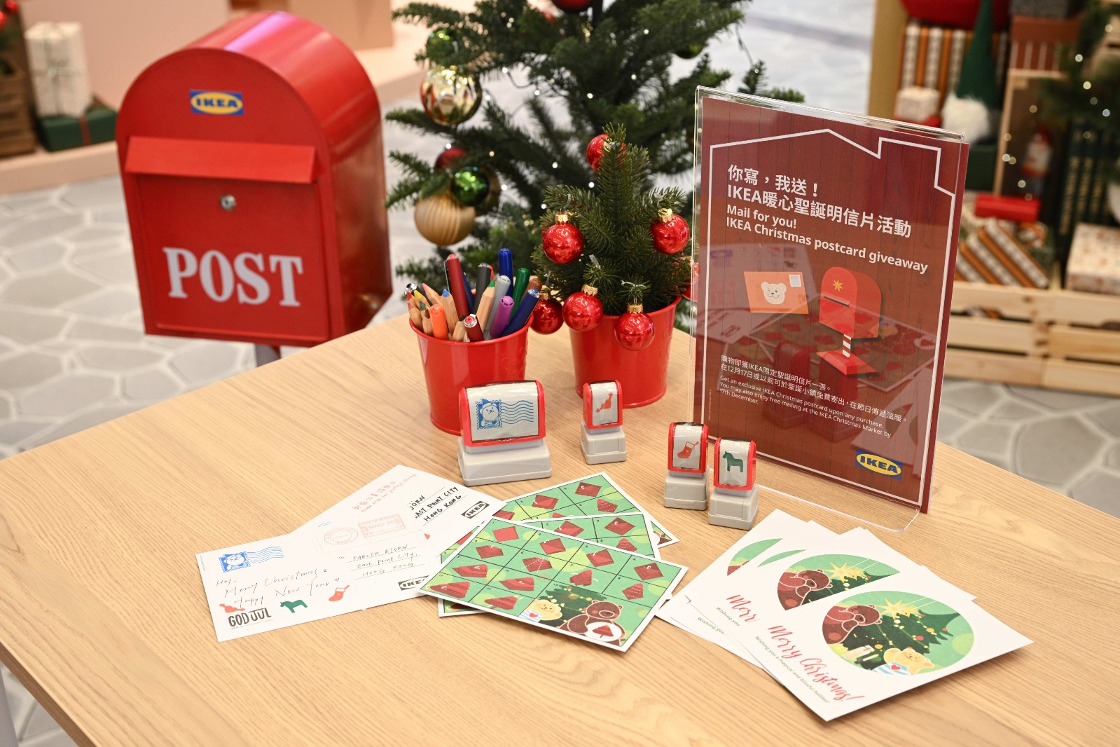 除了獨特的裝置藝術(shù),聖誕小鎮(zhèn)還為參與者帶來暖心的聖誕明信片活動。購物的顧客可獲一張限定版聖誕明信片,並可蓋上特別設(shè)計的印章,使明信片更具個性。12月17日前寄出的明信片,還能享受免費寄送服務(wù),向親朋好友傳遞溫暖。