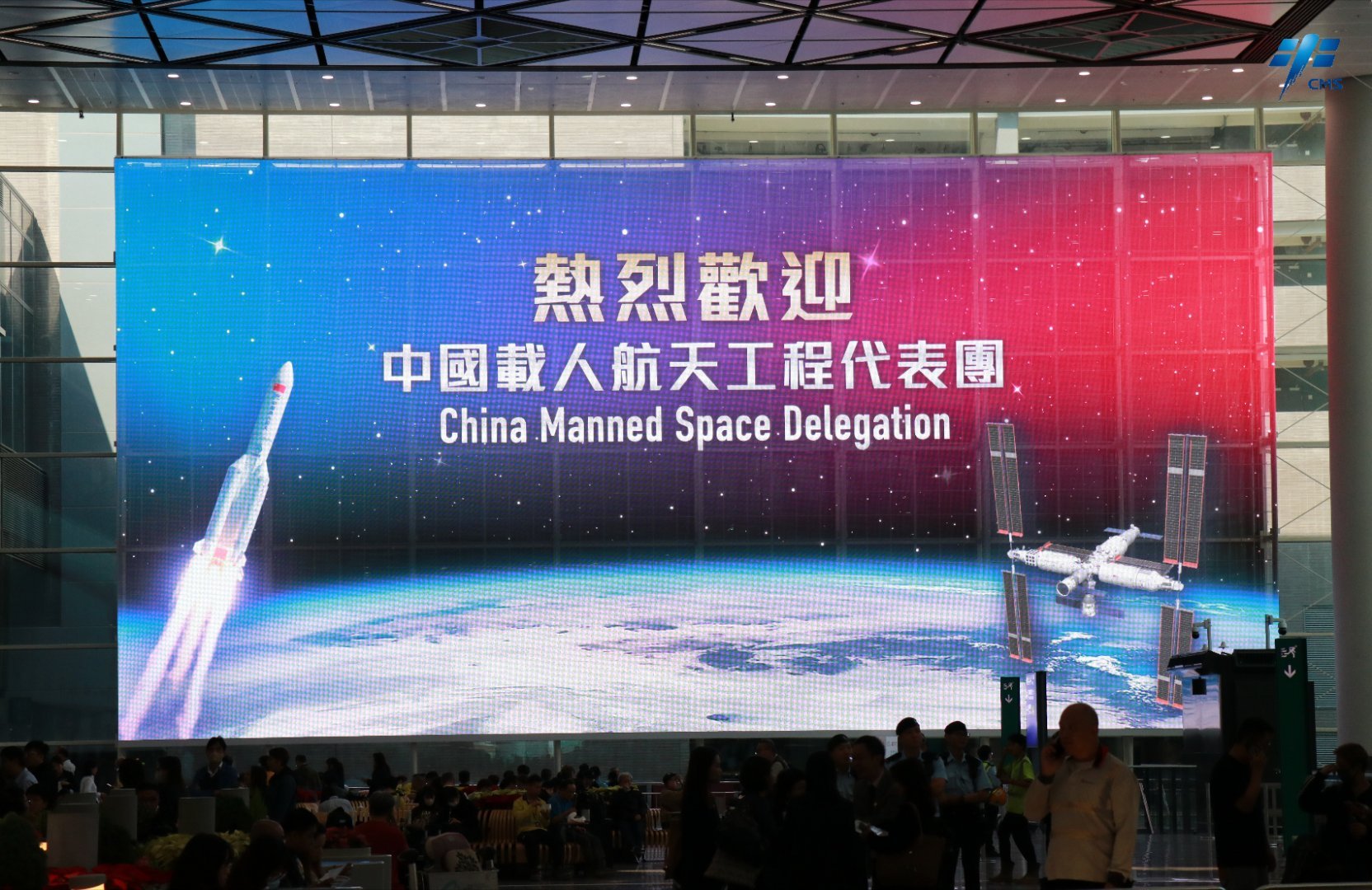 中國(guó)載人航天工程辦公室副主任、代表團(tuán)團(tuán)長(zhǎng)林西強(qiáng),執(zhí)行空間站建造任務(wù)的神舟十二號(hào)乘組、神舟十三號(hào)乘組、神舟十四號(hào)乘組、神舟十五號(hào)乘組航天員代表劉伯明、王亞平、陳冬、張陸率先步出機(jī)場(chǎng)大廳。政務(wù)司司長(zhǎng)陳國(guó)基、民政及青年事務(wù)局局長(zhǎng)麥美娟等政府官員到機(jī)場(chǎng)迎接。百餘名小學(xué)生們?cè)诂F(xiàn)場(chǎng)揮舞著五星紅旗和紫荊花區(qū)旗,熱情歡迎代表團(tuán)的到來(lái)。(圖片:微博@載人航天小喇叭)