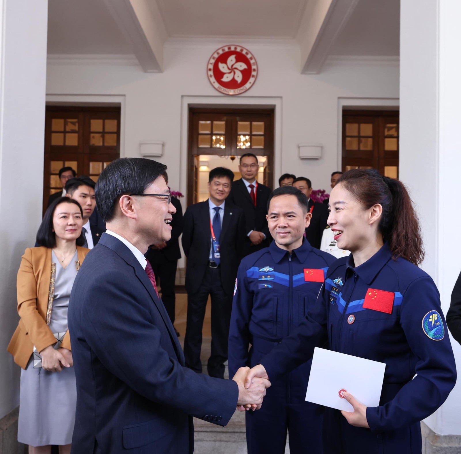 李家超指出,在他看來,各位航天員除具備個人本領(lǐng)和團隊精神以外,他們的感染力、魅力和「圈粉」能力,都是天上的水平,是香港青年人的榜樣。