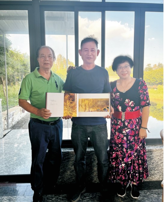 藝術(shù)家蘇子雄(左)夫婦與金絲楠木藏家談銘欽(中)。