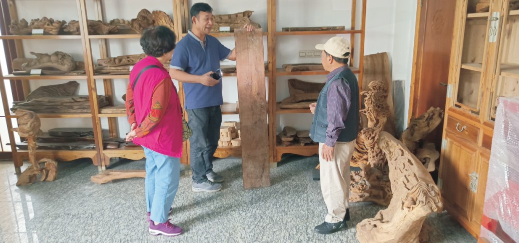 談銘欽(中)介紹金絲楠木的特點(diǎn)。