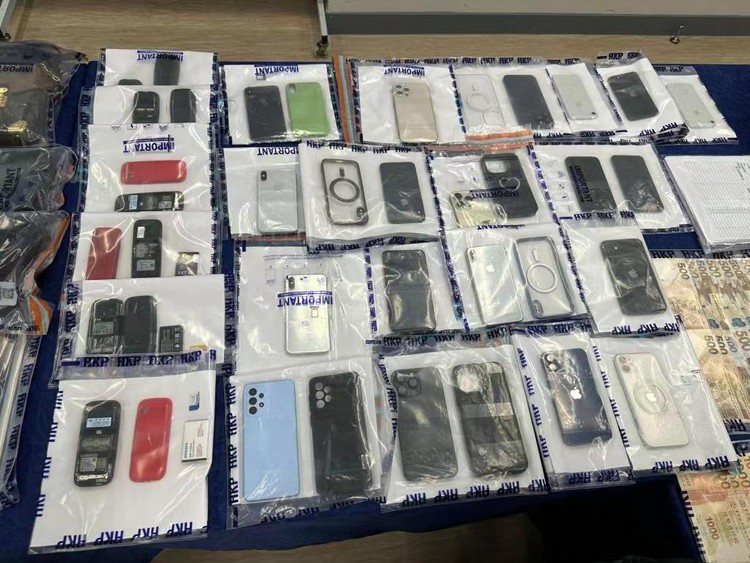 另外,警方亦成功搗破集團位於荃灣區(qū)的涉案電話中心,檢獲大量文件、電話卡和銀行卡等證物。(記者 區(qū)天海)