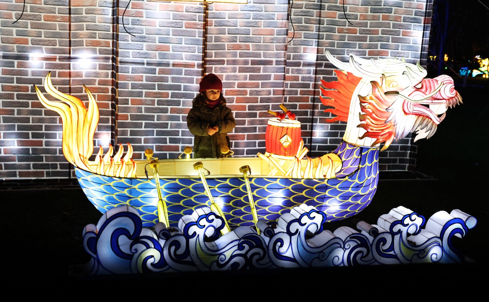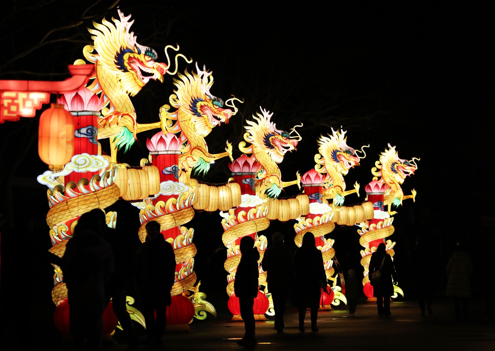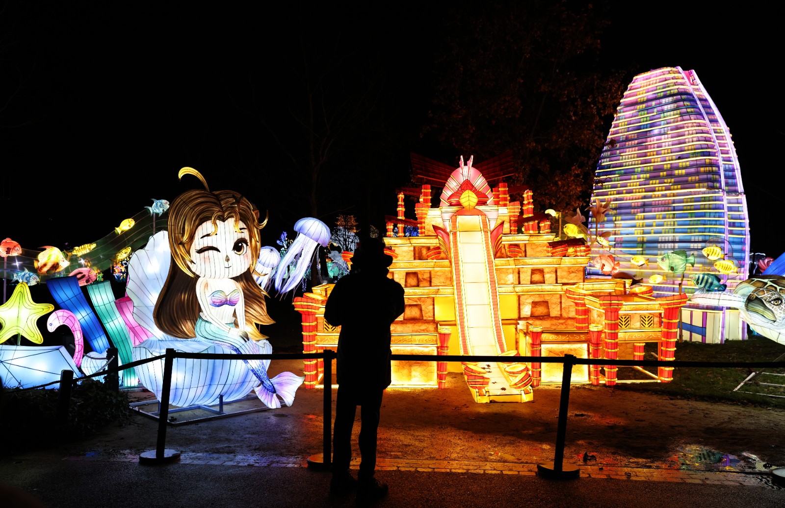 據(jù)組織方介紹,本次燈會將中國的燈彩製造技藝與巴黎風(fēng)情園的道路園景有序結(jié)合,整場燈會以點連線、穿線成面,共設(shè)東情西韻、山海有靈、煙火市集三大展區(qū)。2024年適逢龍年,龍的元素出現(xiàn)在景區(qū)各處。穿行在園區(qū),法國觀眾不僅能欣賞到傳統(tǒng)的十二生肖、亭臺樓閣,更能沉浸在《山海經(jīng)》各類瑞獸奇珍創(chuàng)造的奇幻世界當(dāng)中。