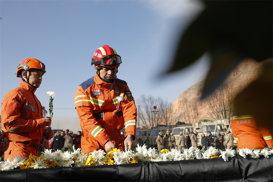 甘肅舉行默哀儀式悼念積石山6.2級地震遇難同胞