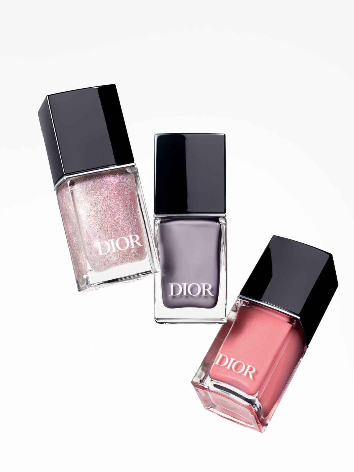 美妝甲油為妝容添上最後點綴,珊瑚粉紅色555 Popeline添加豐富且低調(diào)的深邃金紫色珠光粒子;另一款色調(diào)595 Lilac Organza詮釋了春日溫婉的花卉意象。001 Dior Sequins甲油面油的鉑金、淡紫、粉紅和深紫色閃粉能提升甲油的閃爍效果,亦可單獨使用,打造低調(diào)的甲色。 (記者:Janice)