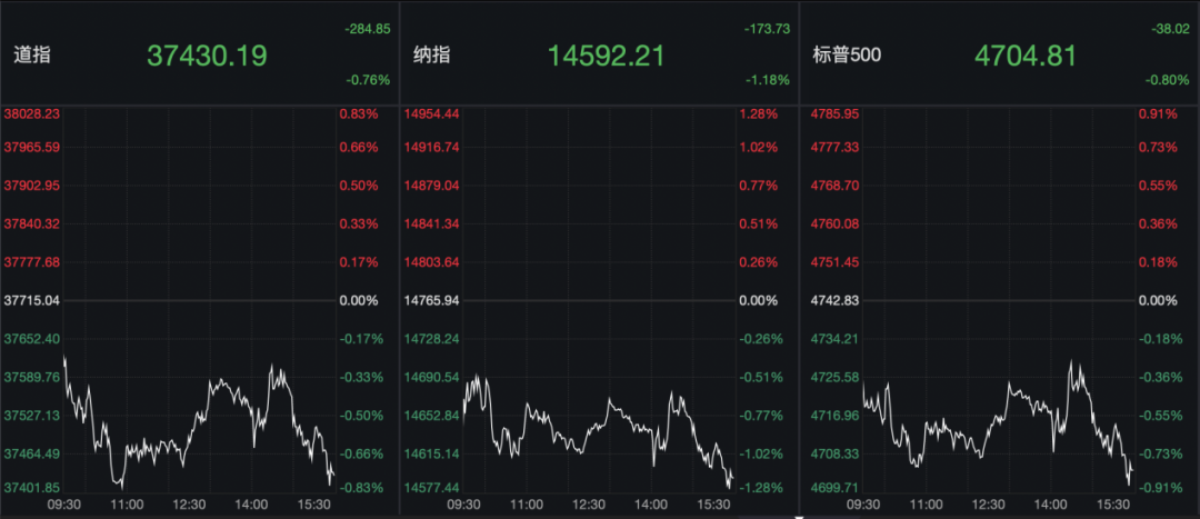 受此影響,美股三大指數(shù)集體低開,美元指數(shù)持續(xù)走高,會議紀(jì)要公布後,美股尾盤繼續(xù)走低,截至收盤,納指跌1.18%,連續(xù)2日大跌,刷新12月12日以來收盤低位;標(biāo)普跌0.8%,道指收跌284.85點,跌幅0.76%。