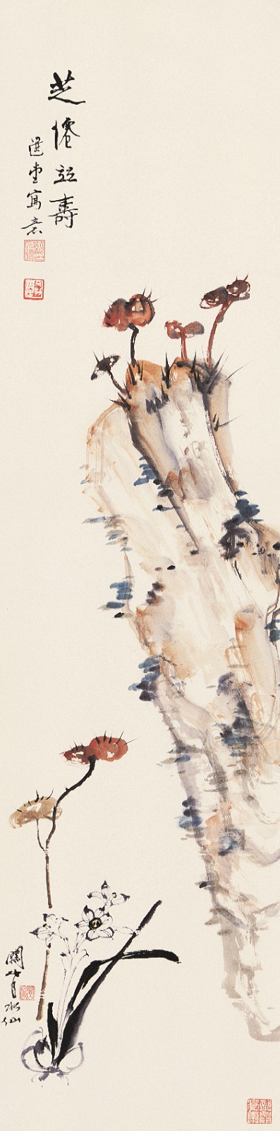 饒宗頤及關(guān)山月作品《芝仙並壽》,1997年。