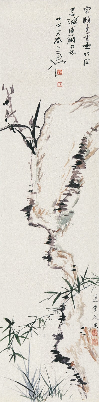 饒宗頤及楊善深作品《坡石蘭竹》,1998年。
