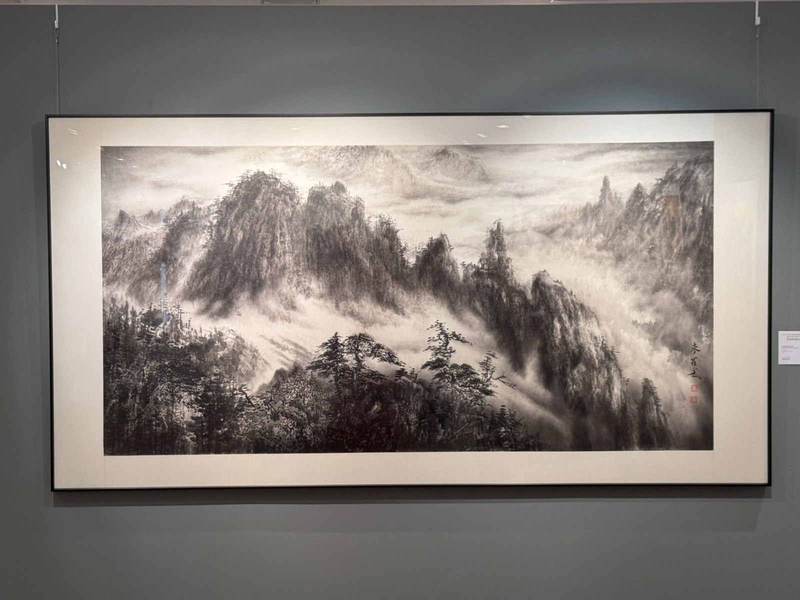 麥羅武2018年初登黃山,受其萬千變化的景象感染,創(chuàng)作了「雲(yún)山行」系列。他的雲(yún)山作品,以寫實(shí)為基礎(chǔ),但在構(gòu)圖和筆墨變化方面運(yùn)用了多種不同的技巧,形成了獨(dú)特的藝術(shù)語言。畫作《雲(yún)山行之一》中可見雲(yún)霧繚繞的山巒,好像在訴說千年的滄桑。雲(yún)層圍繞在山腰,形成了富有視覺張力的光影效果,令觀者如同置身於那變幻莫測的仙境之中。畫面中的虛實(shí)交錯(cuò)、陰陽變幻,引導(dǎo)觀者在欣賞美景的過程中領(lǐng)悟自然與人生的哲理。
