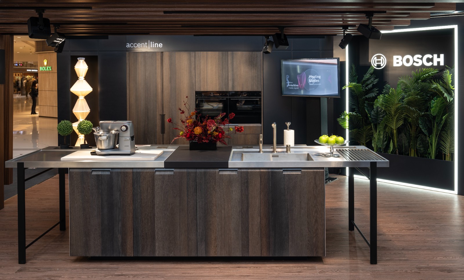 現(xiàn)代人的家居生活離不開高效省時(shí)、時(shí)尚並重的家電,德國家電品牌 Bosch推出全新純黑accent|line嵌入式焗爐系列,時(shí)尚的黑色家電融入A.I. 智能科技,產(chǎn)品還摘下德國iF設(shè)計(jì)大奬金獎(jiǎng)。即日起至1月14日,品牌聯(lián)乘意大利家具品牌Poliform於圓方打造限時(shí)展覽「The Future of the Kitchen」,以該焗爐系列為主角,配合其他廚櫃及電器,展示融合經(jīng)典和現(xiàn)代的家居廚房。