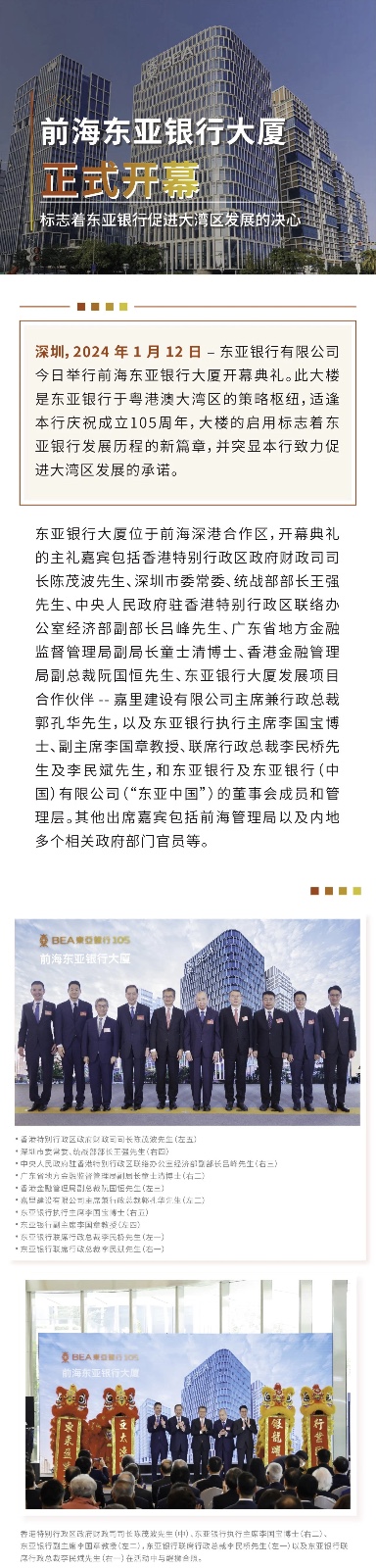 前海東亞銀行大廈正式開幕 支持大灣區(qū)發(fā)展