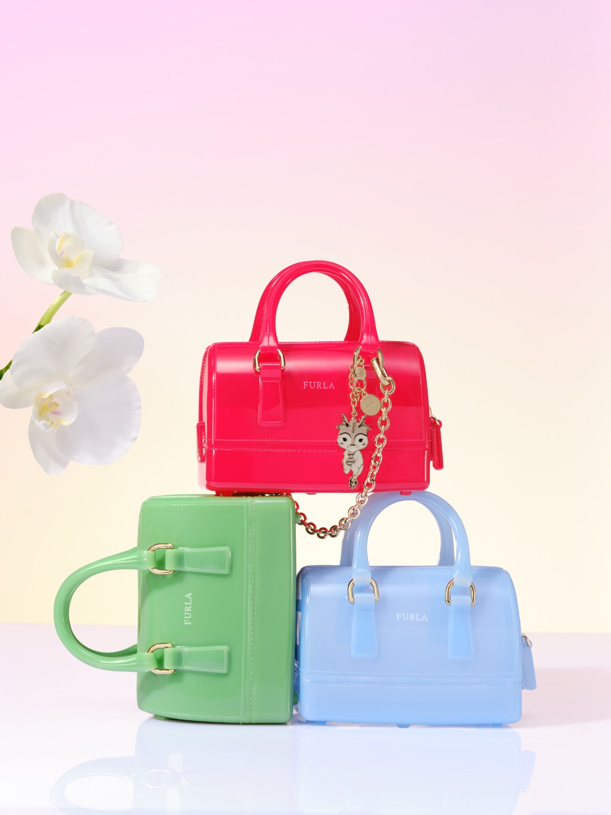 Candy系列手袋於2010年首次亮相,是次為慶祝甲辰龍年,推出該系列限量版迷你波士頓手袋,挑選了6種蘭花為主題,配色上汲取中國(guó)傳統(tǒng)色彩美學(xué),呼應(yīng)不同顏色格調(diào)的蘭花,包括氣質(zhì)端莊優(yōu)雅的紅河紅蘭、溫婉高貴的湖泊藍(lán)蝴蝶蘭、清雅脫俗的綠雲(yún)蘭、大氣從容的藍(lán)寶石蘭、文雅可愛的桃姬蘭,及寧?kù)o獨(dú)立的黃花杓蘭,用當(dāng)代美學(xué)致敬中國(guó)傳統(tǒng)。該系列沿用PVC材質(zhì)設(shè)計(jì),並配上金屬琺瑯材質(zhì)的卡通龍形吊墜??刹鹦兜慕饘冁湕l肩帶和雙手柄的結(jié)合,以繽紛摩登的造型迎接新一年。 (記者:Janice 部分圖片:Karena)