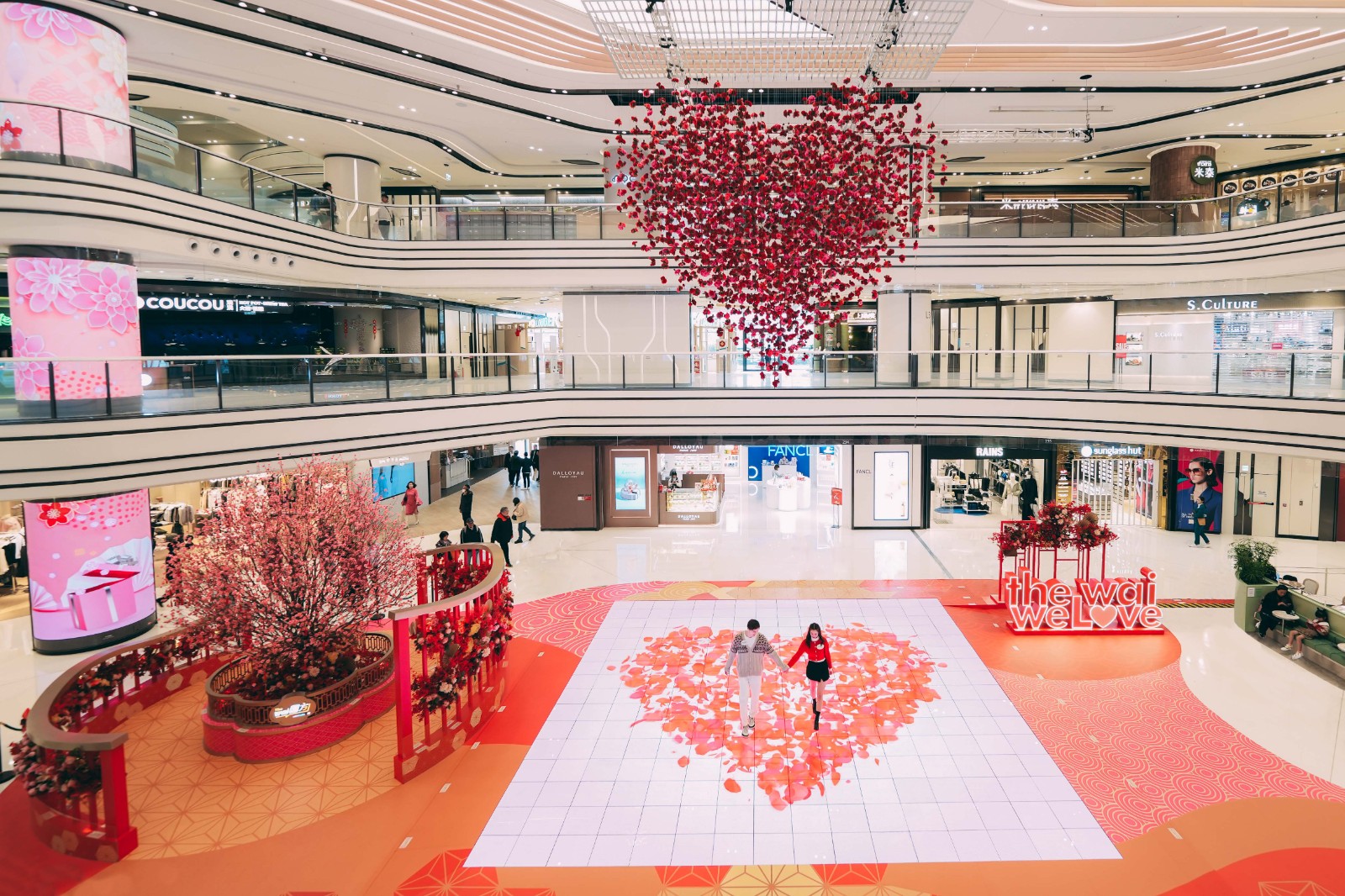 PopCorn、The LOHAS康城及圍方分別以花為主題。Popcorn設(shè)中西合璧的「花漾龍門」布置,花藝師Solomon Leong以中國傳統(tǒng)的竹片工藝展現(xiàn)飛龍?jiān)谔斓男螒B(tài),並以多達(dá)10款花卉打造出精緻花圃,將中庭幻化成園林;The LOHAS康城以粉色系糅合醒獅打造「鴻運(yùn)舞獅」裝置,情侶可於多個(gè)造型可愛的迷你醒獅前拍下合照,或於粉紅花叢旁漫步,浪漫又溫馨;圍方以過萬花束配合LED屏幕打造「繁花綻放新春庭園」,庭園以喜慶紅色及溫馨粉紅色為主調(diào),中庭以花束製成心形圖案高掛半空,地面則以LED屏幕打造充滿動(dòng)感及活力的新春「福地」,在商場(chǎng)不同樓層可多角度欣賞繁花綻放的畫面。