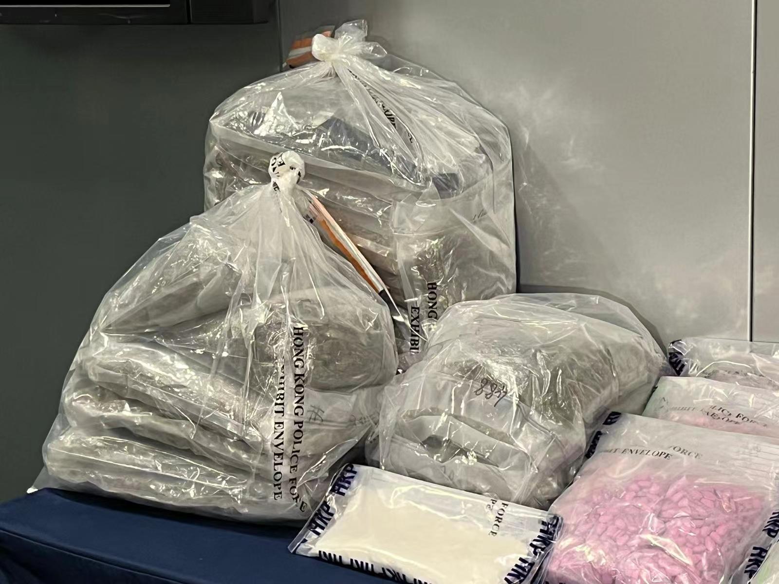 警方毒品調(diào)查科經(jīng)情報(bào)分析及深入調(diào)查,發(fā)現(xiàn)販毒集團(tuán)利用偏遠(yuǎn)村屋作掩飾,租用單位作毒品儲(chǔ)存?zhèn)}再分批出售。前日(25日)採取行動(dòng)搗破位於西貢一村屋的毒品儲(chǔ)存?zhèn)},拘捕1男2女(21至47歲),檢獲10公斤大麻花、23公斤(約46000粒)搖頭丸及327克第一部毒藥依托咪酯,市值約520萬元。