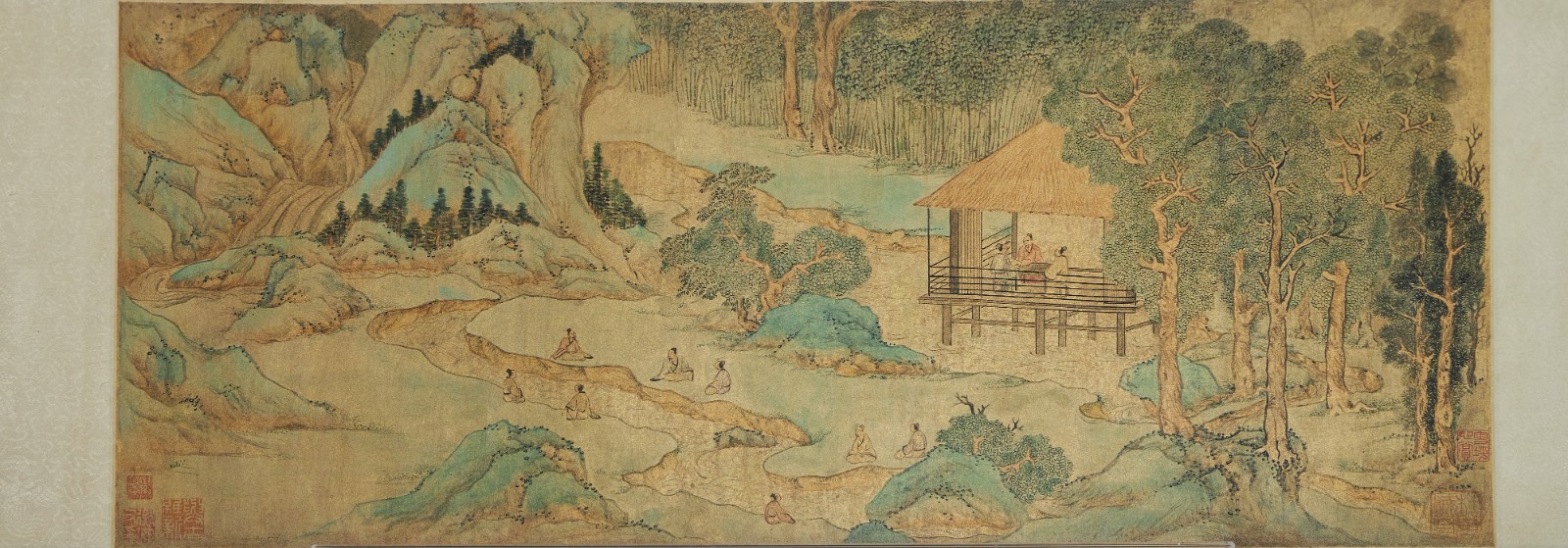 文徵明作品《蘭亭修禊圖》,可見畫中文士席地而坐,飲酒賦詩。
