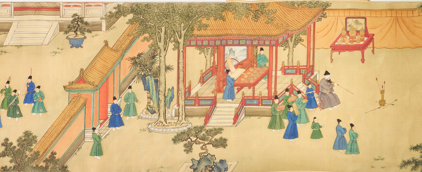 展覽主題為「故事新說」,蔣方亭說是想通過展出明代人物畫,帶出背後引人入勝的故事和生活百態(tài):「展品不僅包括摹寫帝王宮廷生活的畫作,也選取了多幅體現(xiàn)百姓日常生活的作品。」《明宣宗朱瞻基行樂圖》繪畫了明皇帝於御園中行樂及參與各種體育競技活動的場面,畫面右到左為射箭、蹴踘、馬球、捶丸、投壺五種遊戲,卷尾以皇帝乘轎盡興而歸的場景作結(jié),展現(xiàn)明宮娛樂生活的縮影。細看畫作,人物造型描繪精準生動、技法工整細膩,畫家同時對皇宮的樓臺殿閣、各種御用之物一絲不茍地刻畫?!噶硪环薪y(tǒng)的《歲朝圖》描繪明清常見的歲朝村慶主題,三位長者圍坐屋中品茗,孩童在庭院嬉戲,一派熱鬧的春和景象?!雇高^剖析畫作,觀者可一窺古人的生活。