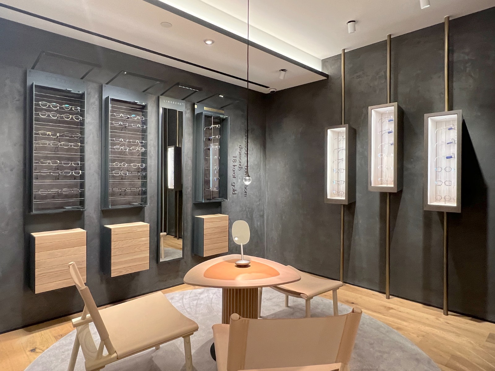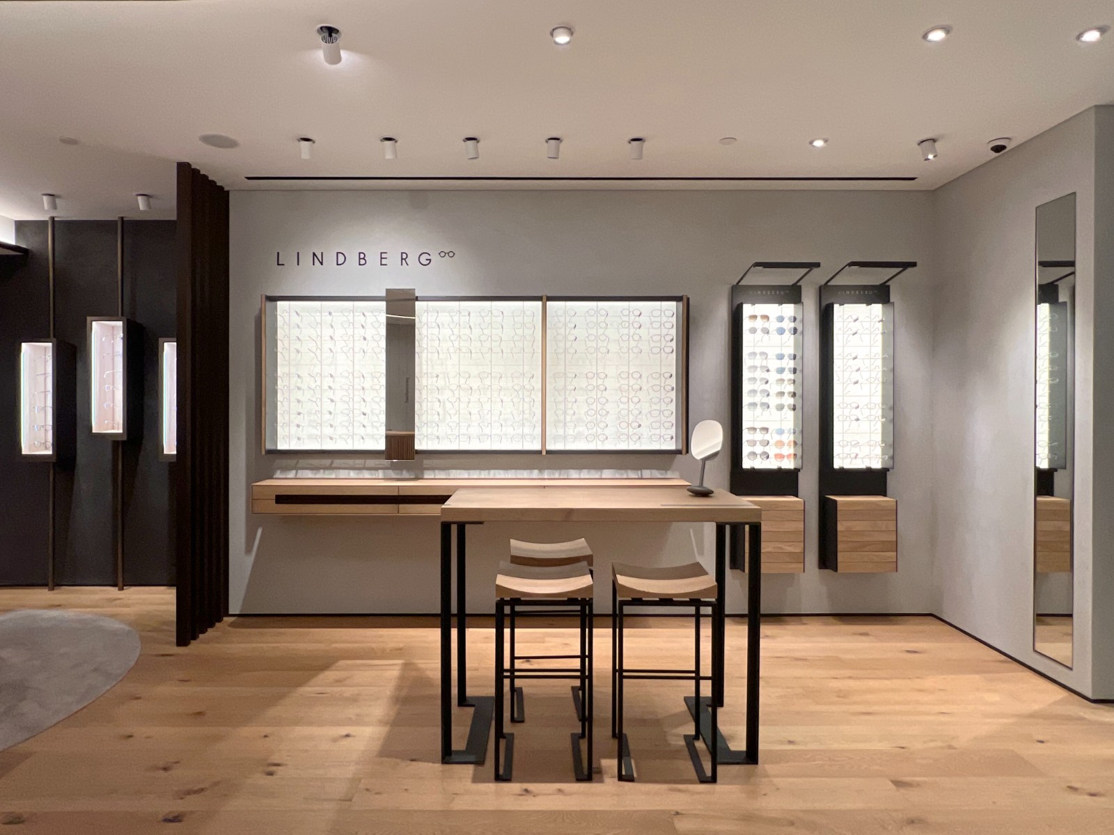店舖選址於尖沙咀海港城,裝潢由品牌內(nèi)部設(shè)計(jì)師操刀,主要採用橡木、黃銅及原始石材等天然材料。店內(nèi)展示了所有系列的產(chǎn)品,如品牌享負(fù)盛名的鈦金屬鏡架,Air Titanium Rim、Spirit Titanium、Strip Titanium及近年推出的Thintanium系列;特殊材質(zhì)前框的N.O.W. Titanium及Acetanium系列;及備有齊全的Buffalo Horn Titanium(水牛角)系列和Precious(貴金屬)系列。