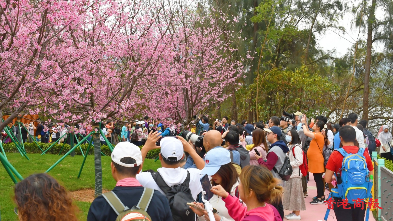 有片|東涌櫻花園的櫻花都開了  吸引遊人爭相打卡