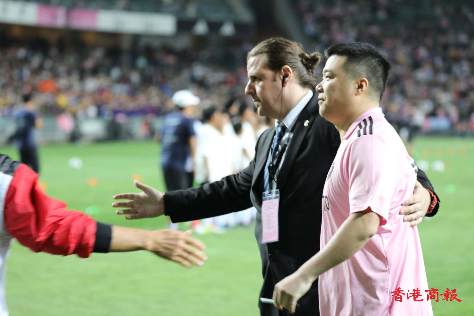 美職聯(lián)球隊(duì)「國際邁阿密CF」今日(3日)下午在香港大球場進(jìn)行公開訓(xùn)練,阿根廷球王美斯(內(nèi)地譯梅西)與隊(duì)友一齊進(jìn)行傳球熱身訓(xùn)練。球隊(duì)班主碧咸(內(nèi)地譯貝克漢姆)也在球場與粉絲們合照。期間,現(xiàn)場不停有粉絲沖到球場上,最後被安保人員帶離。(記者 木子 李承泰 馮瀚文)