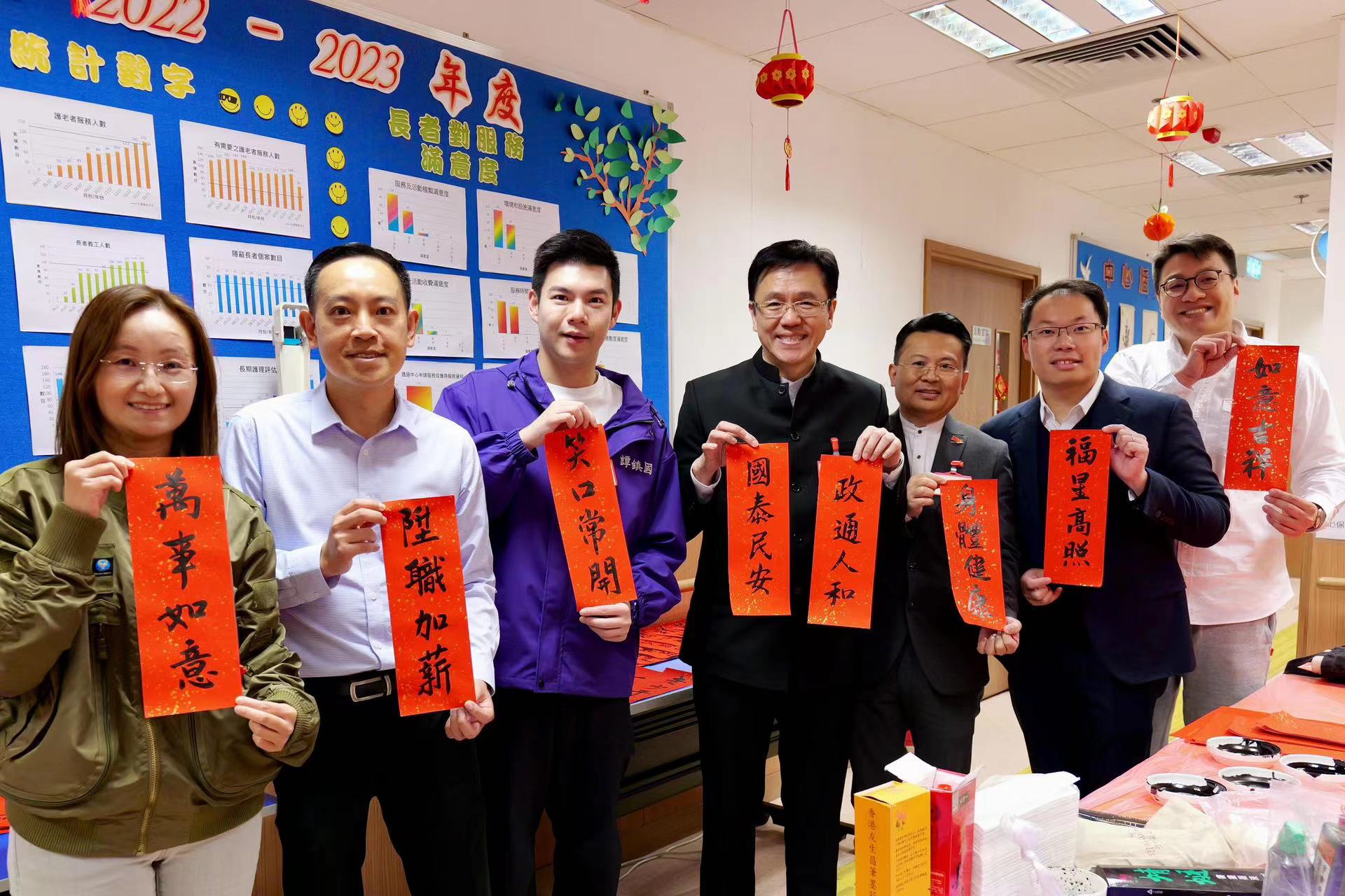 近日,創(chuàng)新科技及工業(yè)局局長孫東帶著新春祝福與智方便平板電腦,聯(lián)同新青聯(lián)「港」不完的愛—青年正向思維計劃35名青年義工,探訪了上水鳳溪護(hù)理安老院及鳳溪長者鄰舍中心50多名老友記,同行的還有港區(qū)全國人大代表陳勇、創(chuàng)新科技及工業(yè)局政治助理廖添誠、新青聯(lián)主席譚鎮(zhèn)國、副主席廖宇軒和王聰穎。在為老友記送上溫暖的同時,也教授他們使用樂齡科技,讓樂齡生活更便捷。