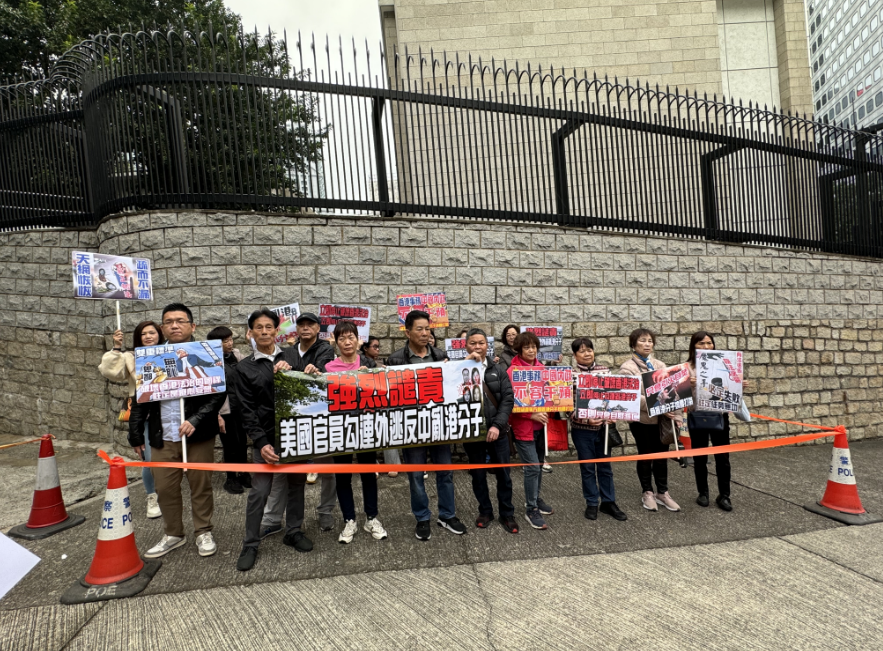 美國務(wù)院亞太事務(wù)助卿康達(dá)日前公然與4名反中亂港分子會(huì)面,今日(7日)有多批市民及團(tuán)體美國駐港澳總領(lǐng)事館抗議,強(qiáng)烈譴責(zé)美官員勾結(jié)外逃反中亂港分子。