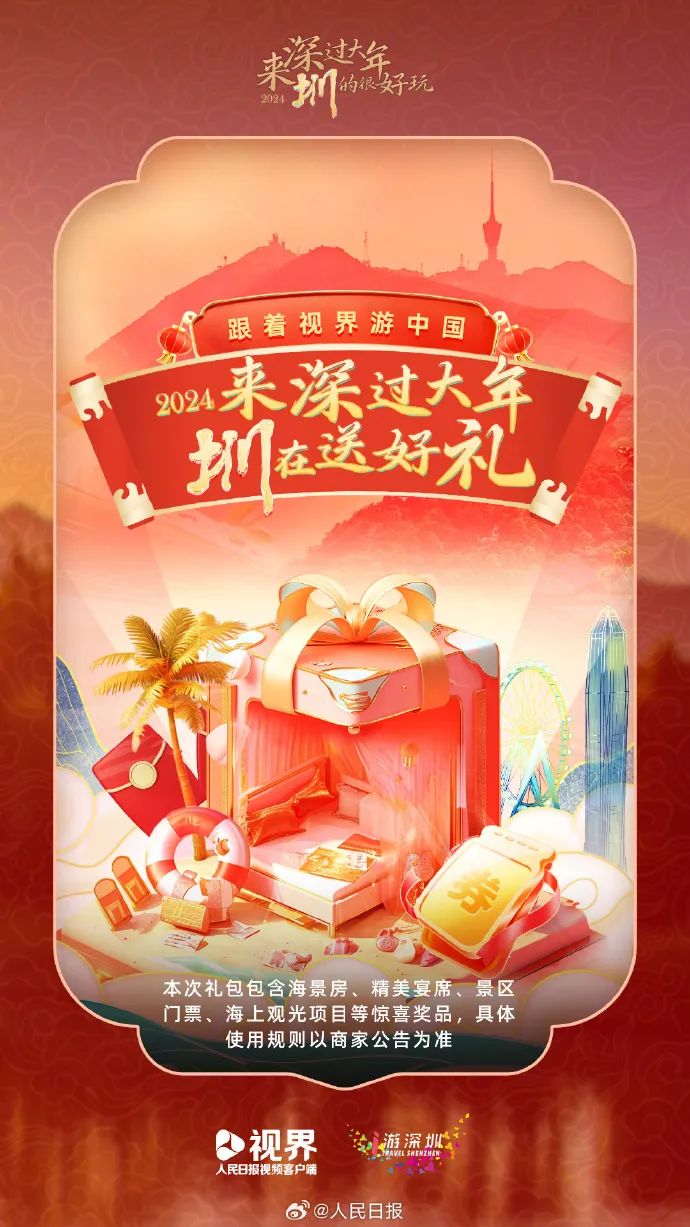 且慢,「i游深圳」官方還聯(lián)合人民日?qǐng)?bào)在微博及視界APP發(fā)起「來深過大年 圳在送好禮」抽獎(jiǎng)活動(dòng),抽取一位幸運(yùn)網(wǎng)友專享價(jià)值超萬元大禮。