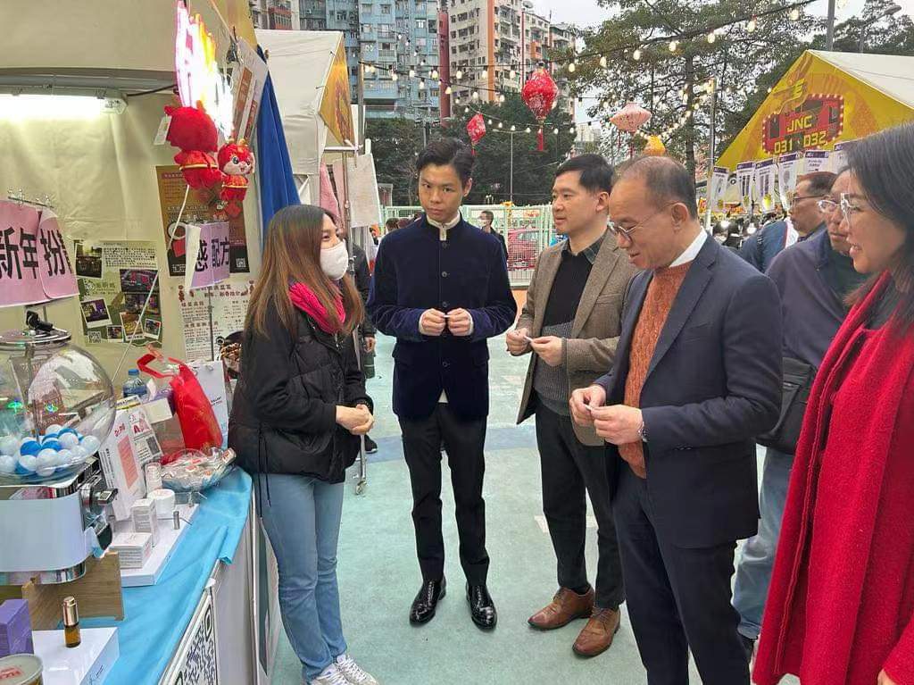 多名觀塘區(qū)區(qū)議員陪同曾局長和胡副局長到訪夜市多個攤位,他們祝賀檔主生意興隆,市民身體健康,人人心想事成,龍騰虎躍。