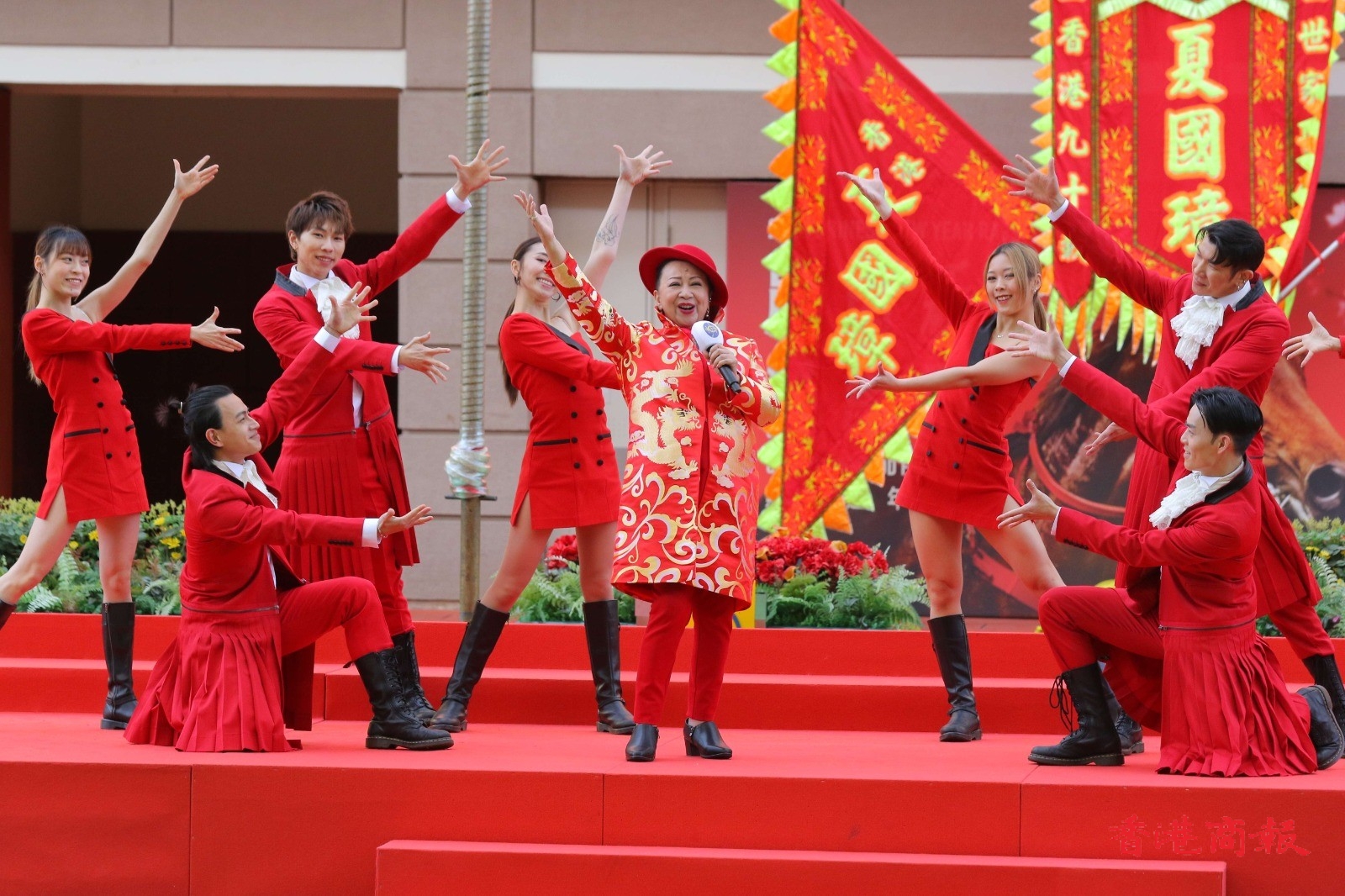 打頭陣就是一身金紅衣著的家燕姐,她先向馬迷拜年:「祝大家龍年得意,龍馬精神,好運(yùn)一條龍,恭喜!恭喜!」家燕姐上臺後,隨即笑言自己似是利是封,見到她就旺財!說罷隨即獻(xiàn)唱一曲《我一見你就笑》。